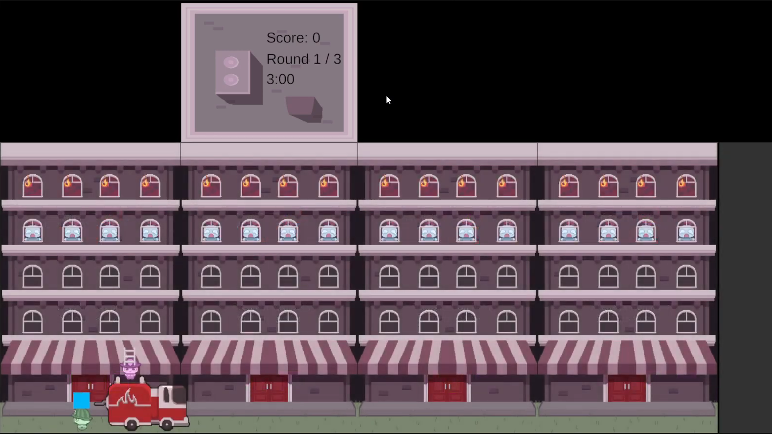 There were three challenging aspects of the mechanics that took the most time to get right. First was the method for getting a player from one edge of the screen to the other seamlessly. The second was how to bind a player to specific screens depending on which panel and controller were activated. Lastly, it was how the players would shoot up there with water and a ladder to put out fires or save people. These three mechanics worked together to create a fun game and to utilize the rectangle to its fullest potential.